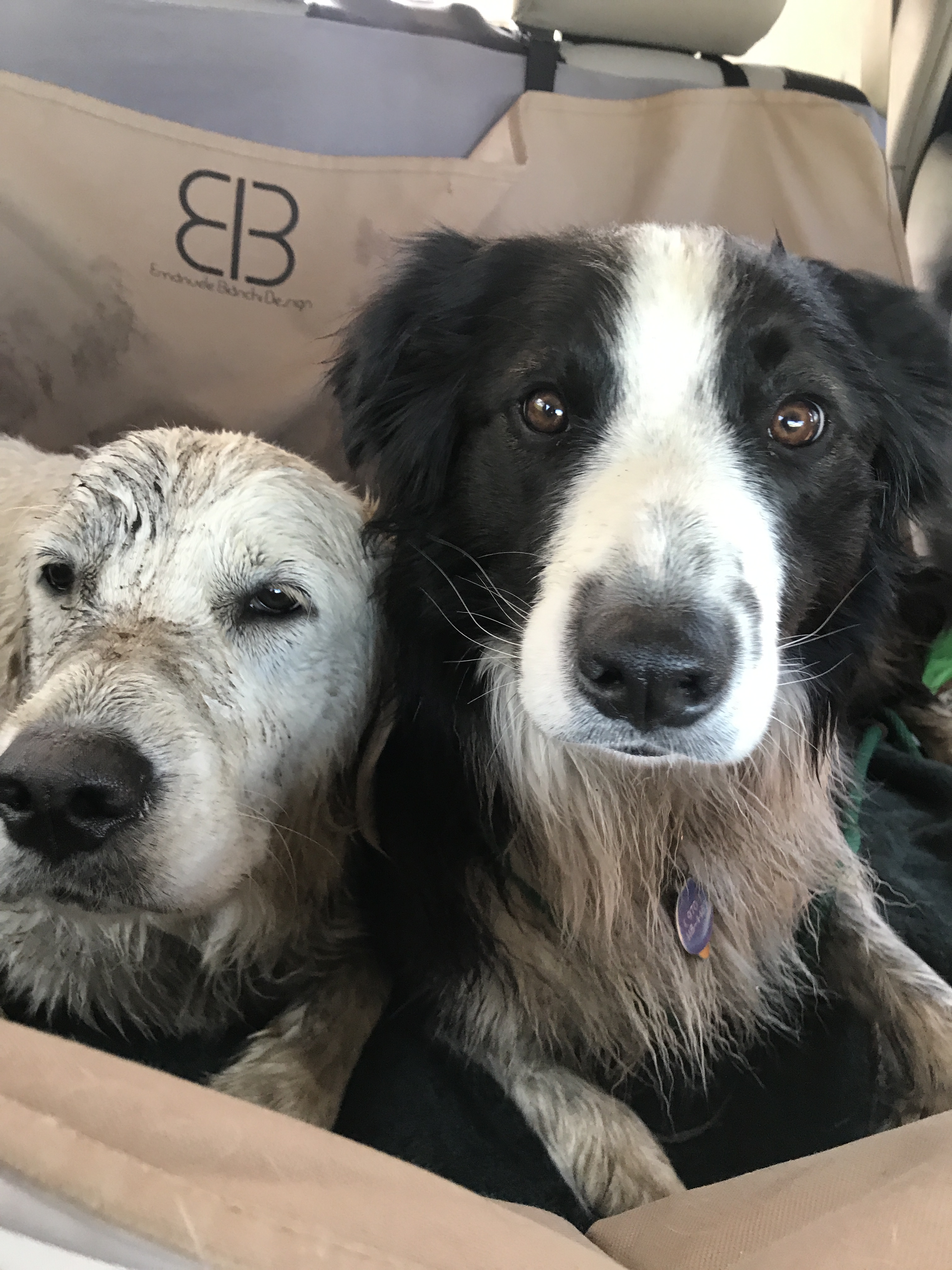 Lexi the Golden and I blew into town on a Saturday afternoon to an empty house – no note, just an open front door. (This was not surprising!) We checked out our digs for the week and took a short walk before Jane and her sidekick, Jake the English Shepherd, returned. Neither one of us can remember with any certainty when we were last together. It didn’t matter. To have friends who you can engage with fully within a moment’s time – where there’s a sense of uninterrupted existence – priceless. No airs to put on, nothing to fake – just be. And a dog friend! Jake and Lexi were joined at the hip in no time, and Jake showed her the Colorado ropes. The only glitch – it took Lexi a solid three days to brave Jake’s doggie door, but he patiently modeled it for her until she got finally it! As recompense she endeavored to coax Jake into deep water to teach him to swim, but he would have none of it.
