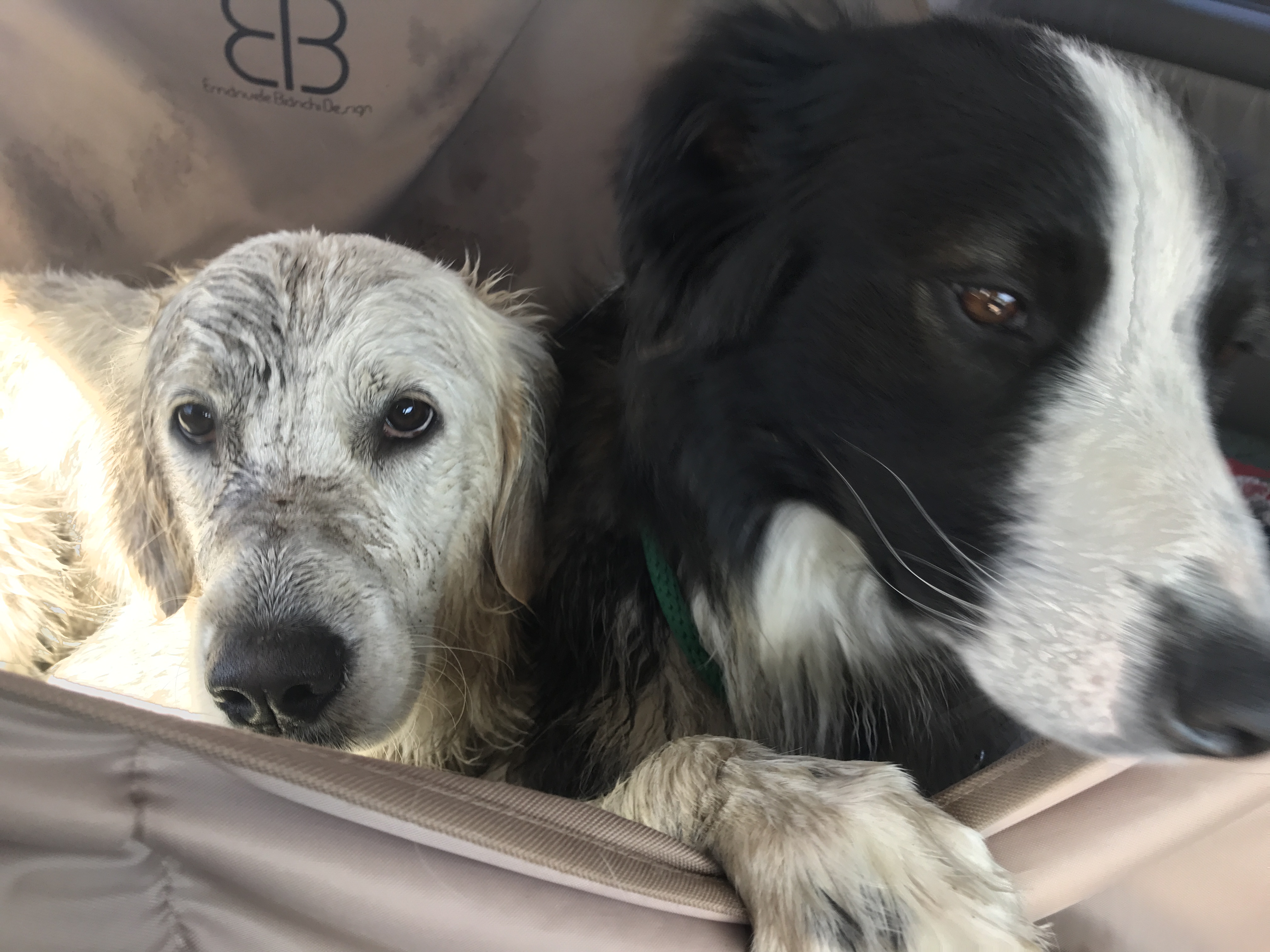 Hiking and hiking and hiking – never enough. Awe-inspiring views and the boundless beauty of mountain streams and lakes, moose, wildflowers and endless meadows. Infinitely more fun with faithful four-legged friends, both of whom had limitless energy for miles of chasing, swimming and running – until they didn’t. (See mud-caked sleepy dog car photos:).