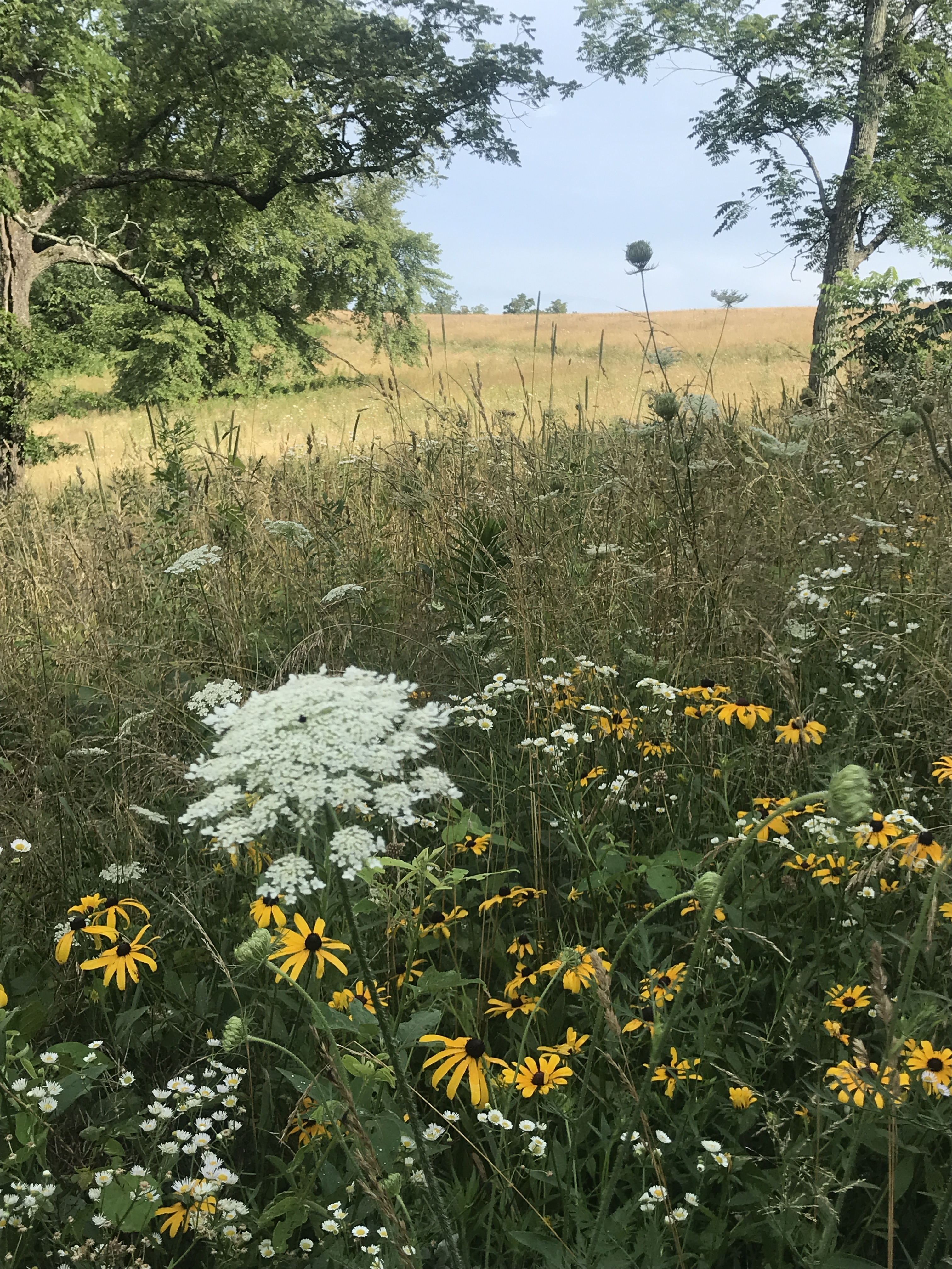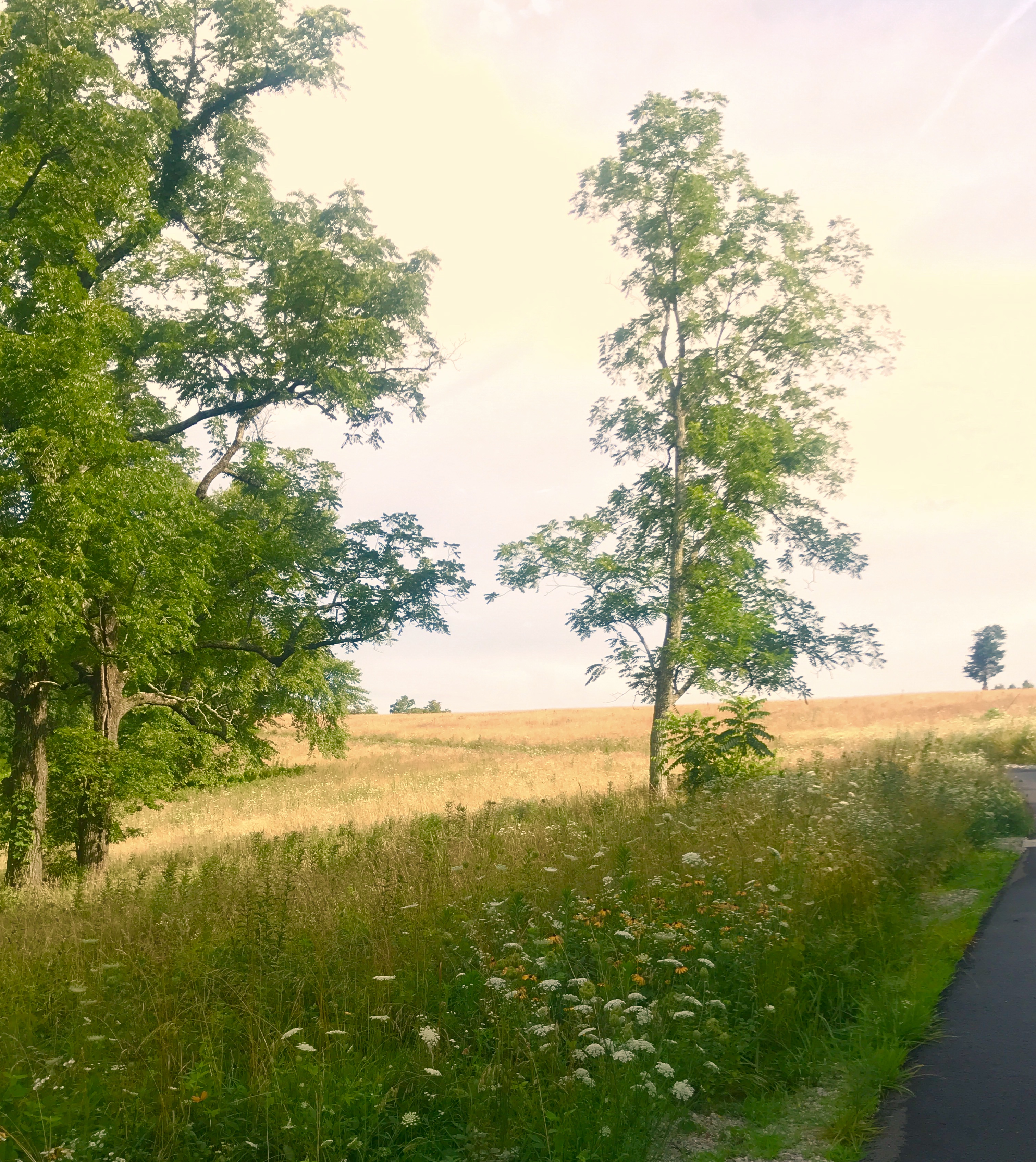 Lexi and I wandered happily around the property, transported back a century ago. I felt such a connection to her there, and relished each footstep on the ground that she trod for many years. Behind the house, the terrain steepens a bit and a trail climbs the hill behind the barn. We roamed for a while, taking in the fields of queen anne’s lace and brown-eyed susans, with golden afternoon sunshine painting the fields in the distance, carried through time.