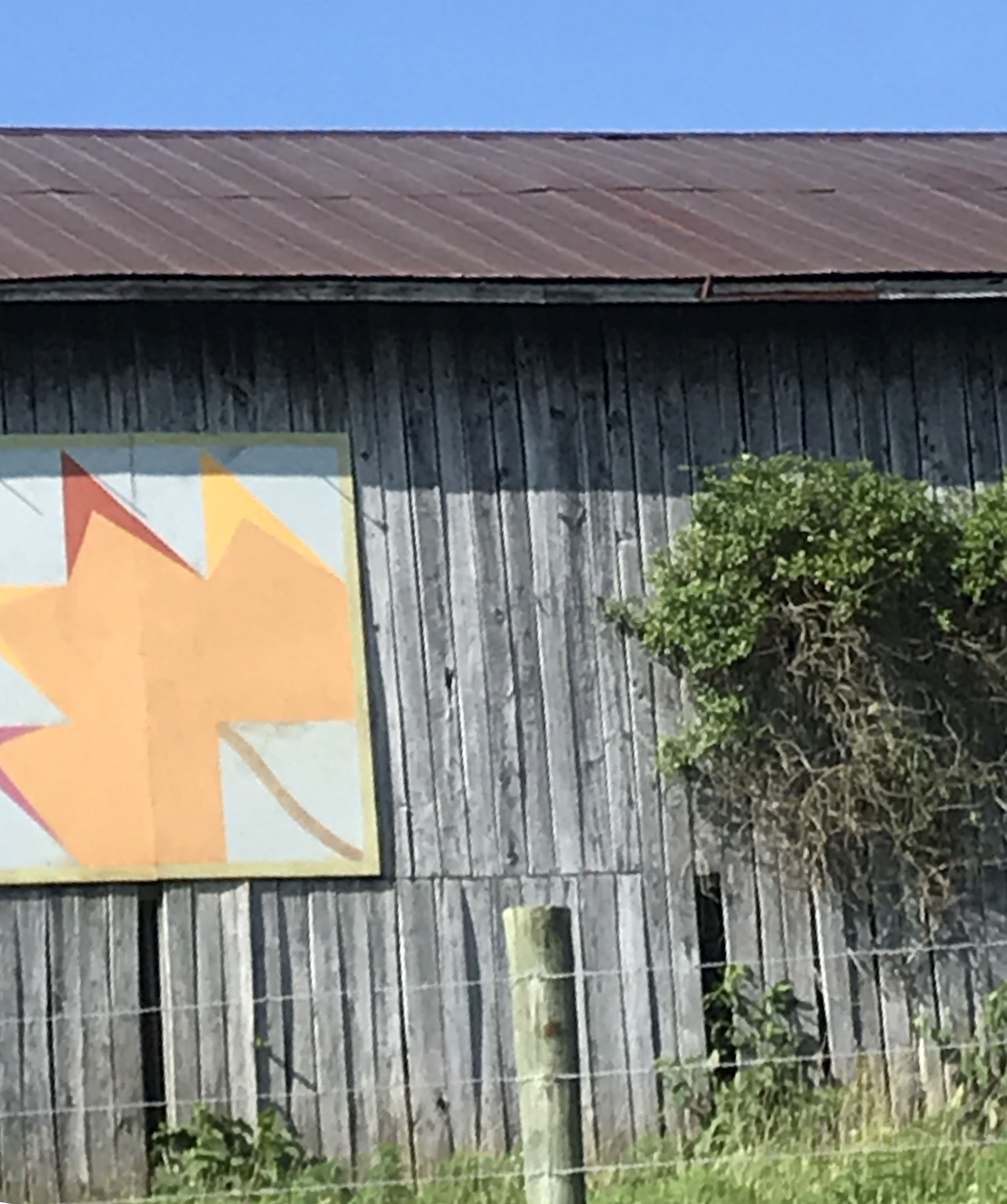 I thought it was a novelty, a cool splash of color that some farmer added to the barn as a gift to his quilting wife, or that she may have painted as a nod to the rich quilting history of the area. It was like finding a four-leaf clover when you weren’t even looking. As we continued on, I began to see them more frequently. Amazing! All these country roads, dotted with small farms with livestock and healthy fields and gardens, boasted of at least a few of these “quilt barns”.